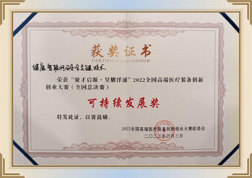 近日,“2022全國高端醫(yī)療裝備創(chuàng)新創(chuàng)業(yè)大賽(全國總決賽)”在海南成功舉辦,云曦作為智能健康穿戴設備和醫(yī)療器械的領導品牌代表參賽,參賽項目“健康智聯網及安全關鍵技術”獲得本次大賽可持續(xù)發(fā)展單項獎。