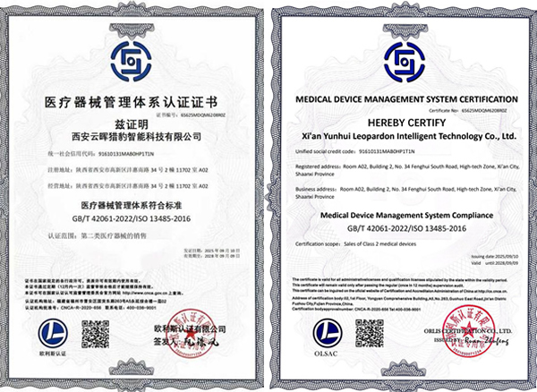 熱烈祝賀西安云暉獵豹智能科技有限公司成功通過國家認(rèn)監(jiān)委權(quán)威認(rèn)證,榮獲ISO 13485醫(yī)療器械質(zhì)量管理體系證書!這一重要成就標(biāo)志著云暉健康在醫(yī)療器械質(zhì)量管理領(lǐng)域邁上了新的臺階,為公司未來發(fā)展奠定了堅(jiān)實(shí)基礎(chǔ)。權(quán)威認(rèn)證,品質(zhì)保障